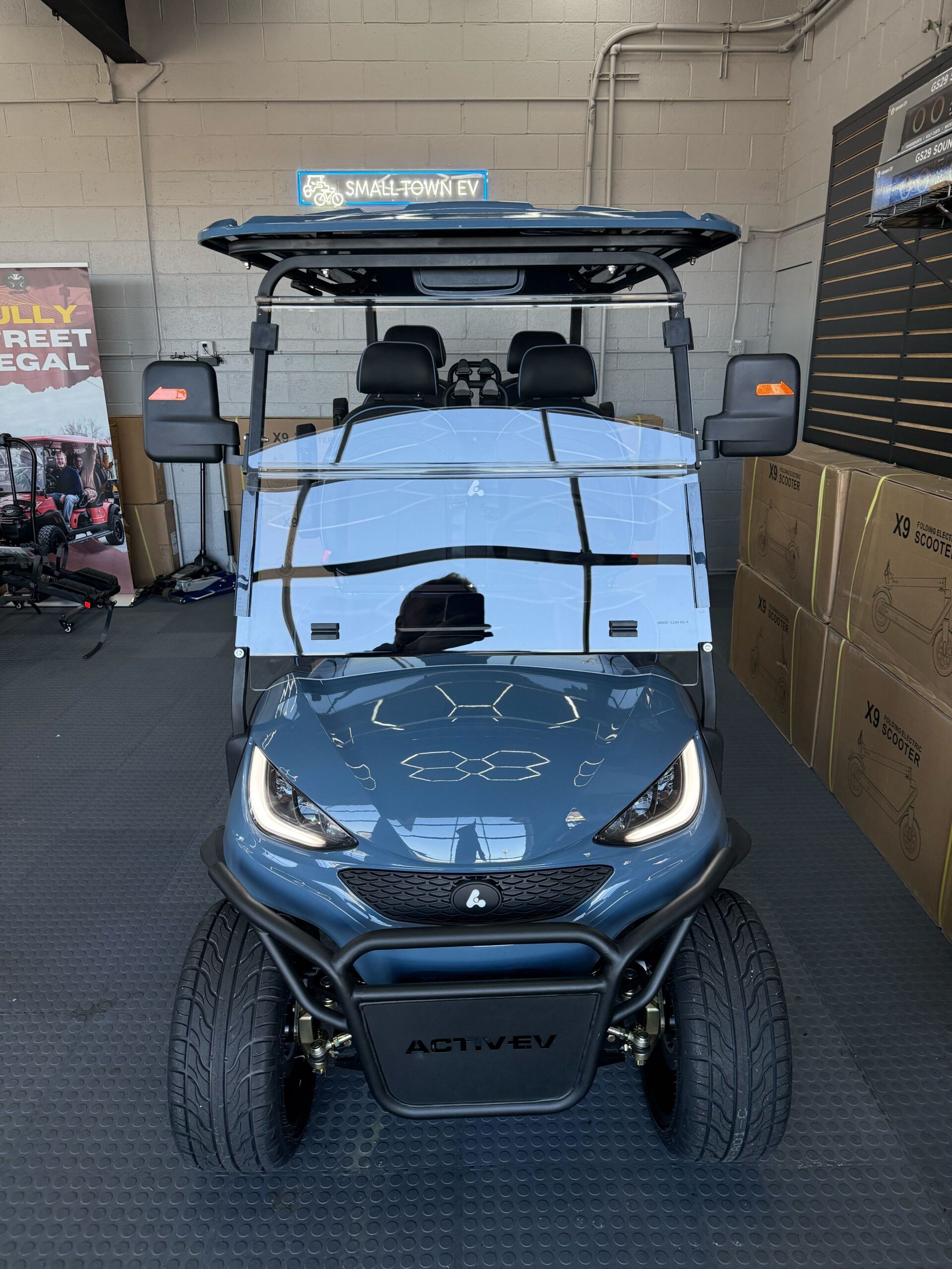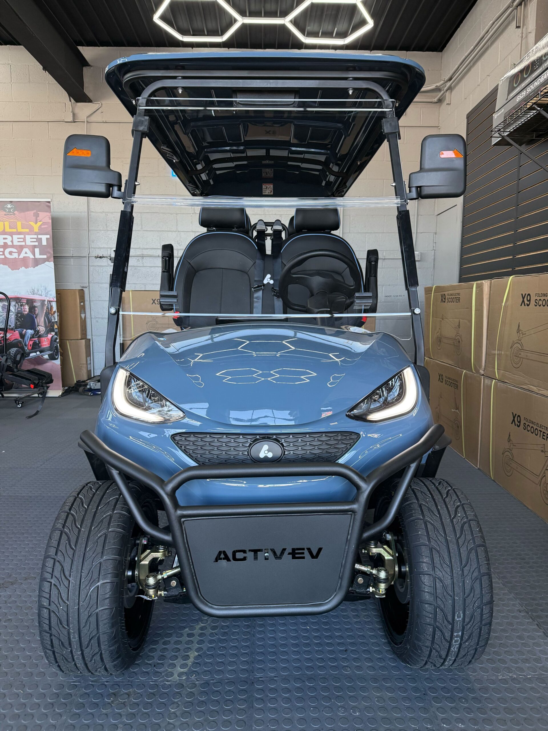 The ActivEV Pulse 4 Forward Street Legal Golf Cart in Anvil Blue combines modern design, premium comfort, and advanced lithium electric performance in a versatile 4-passenger neighborhood vehicle. Built for smooth and reliable transportation, this forward-facing golf cart is ideal for neighborhoods, lake communities, campgrounds, resorts, and private properties.