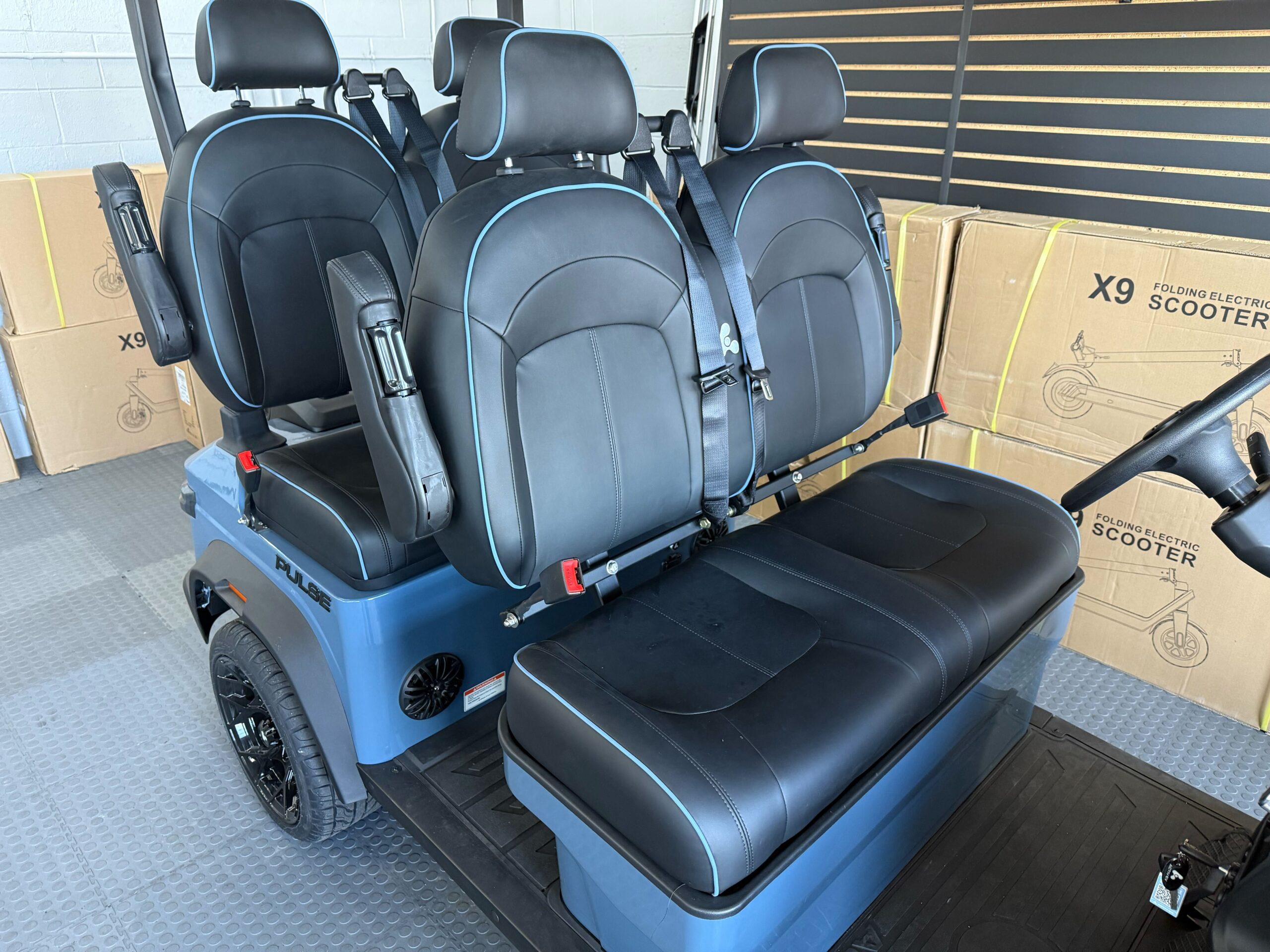 Technology and convenience are built into the Pulse platform. A large touchscreen display gives drivers easy access to vehicle information and controls, while modern features like a backup camera, LED lighting, and integrated charging options add safety and everyday convenience. These features combine to create a driving experience that feels more like a modern electric vehicle than a traditional golf cart.