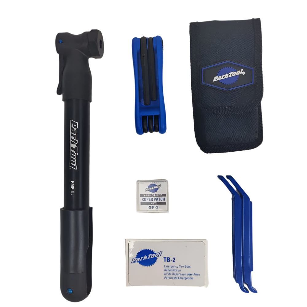 What do you do when you get a flat on the road? Patch it! Pump it! Don’t walk home. Check out this repair kit, including tire levers, tube patch, multi-tool and pump. Made by the number one name in bike accessories Park tool, keep these items in your bag to get you through most punctures on the road. .