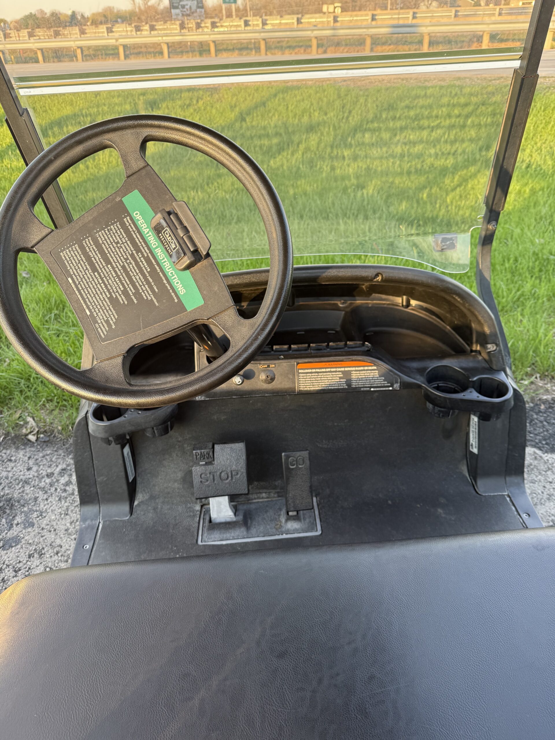 This cart also includes a windshield, roof, and comfortable seating, making it practical for a variety of weather conditions and uses. The simple and functional layout makes it easy to operate, while the stable ride and tight turning radius allow for smooth maneuverability in tighter spaces.